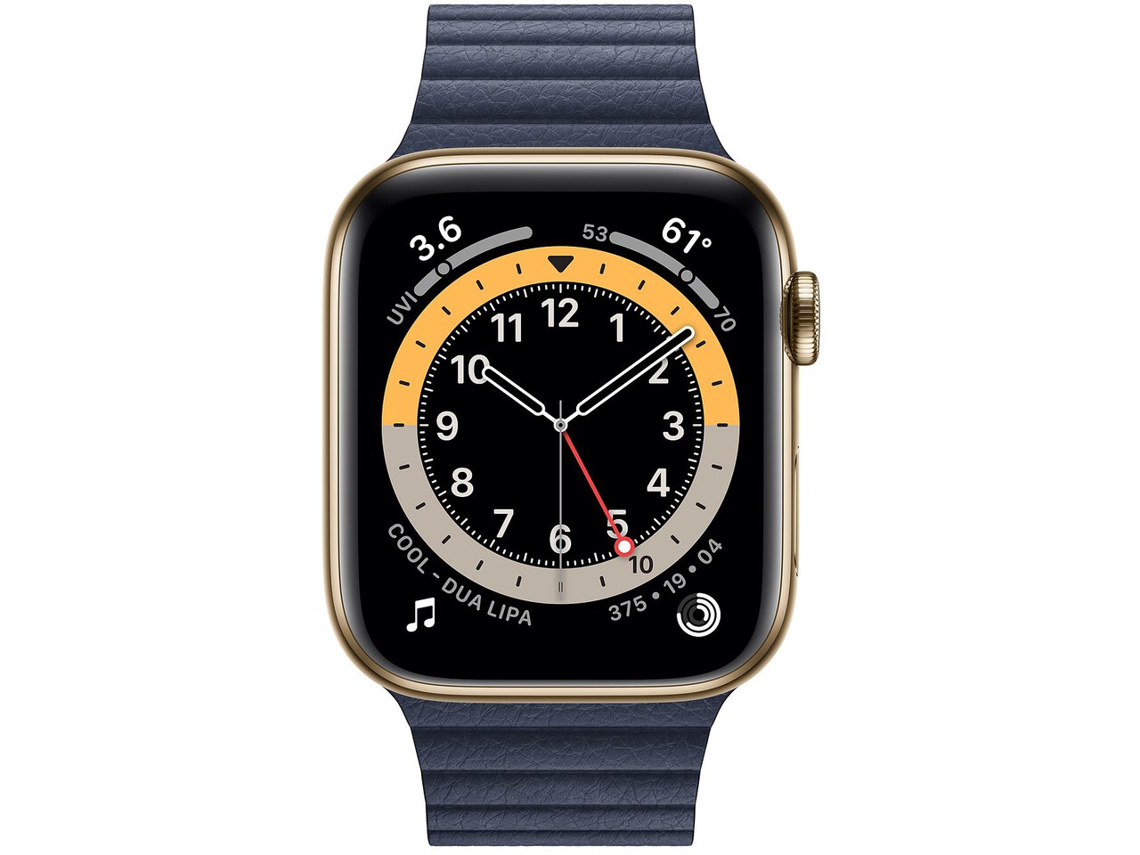 Cellulare • anno 2020, 44mm Oro Stainless steel, Blu abisso Loop in pelle (taglia Medium)
